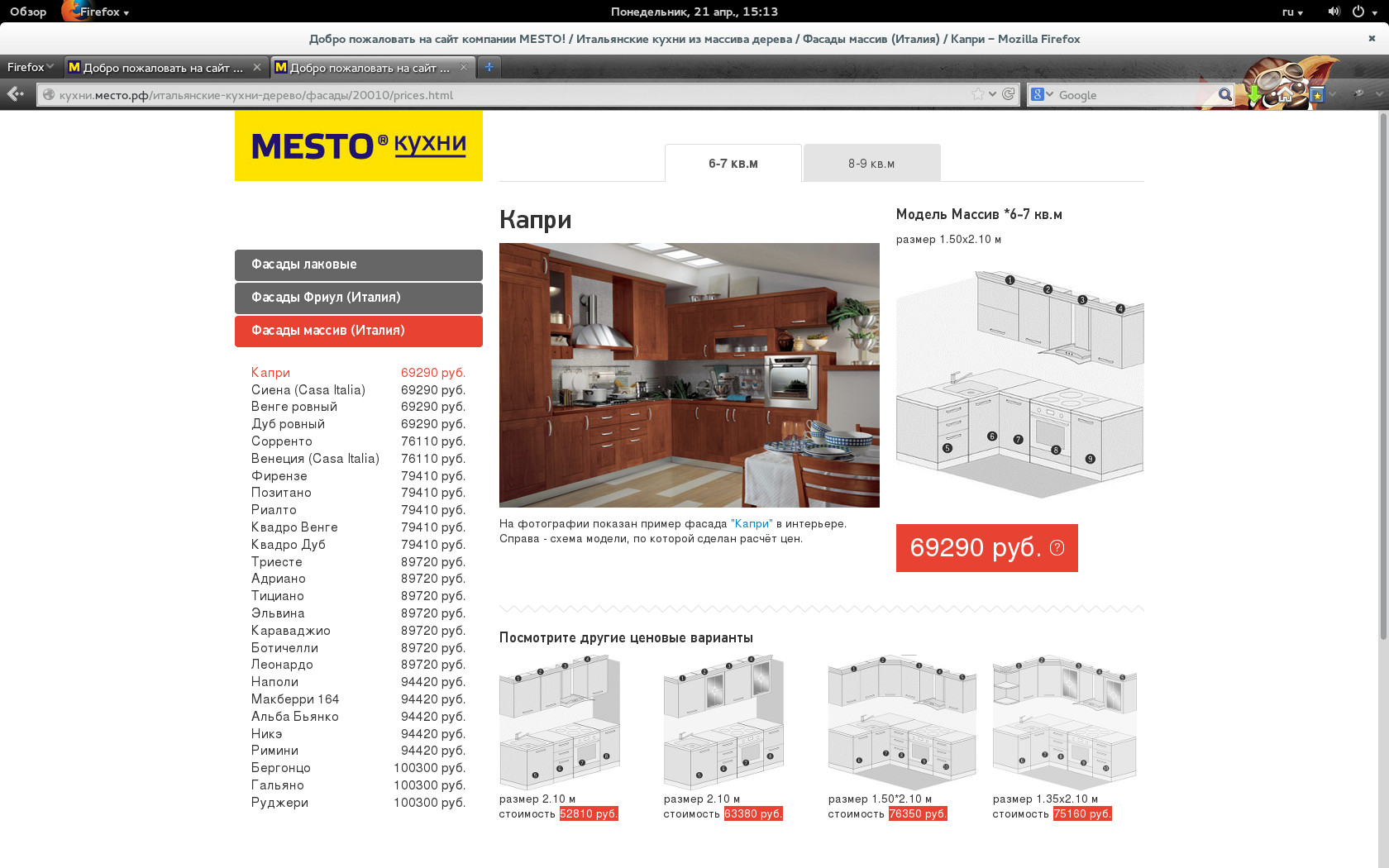 место.рф: Сравнение цен одной модели кухни в разных фасадах